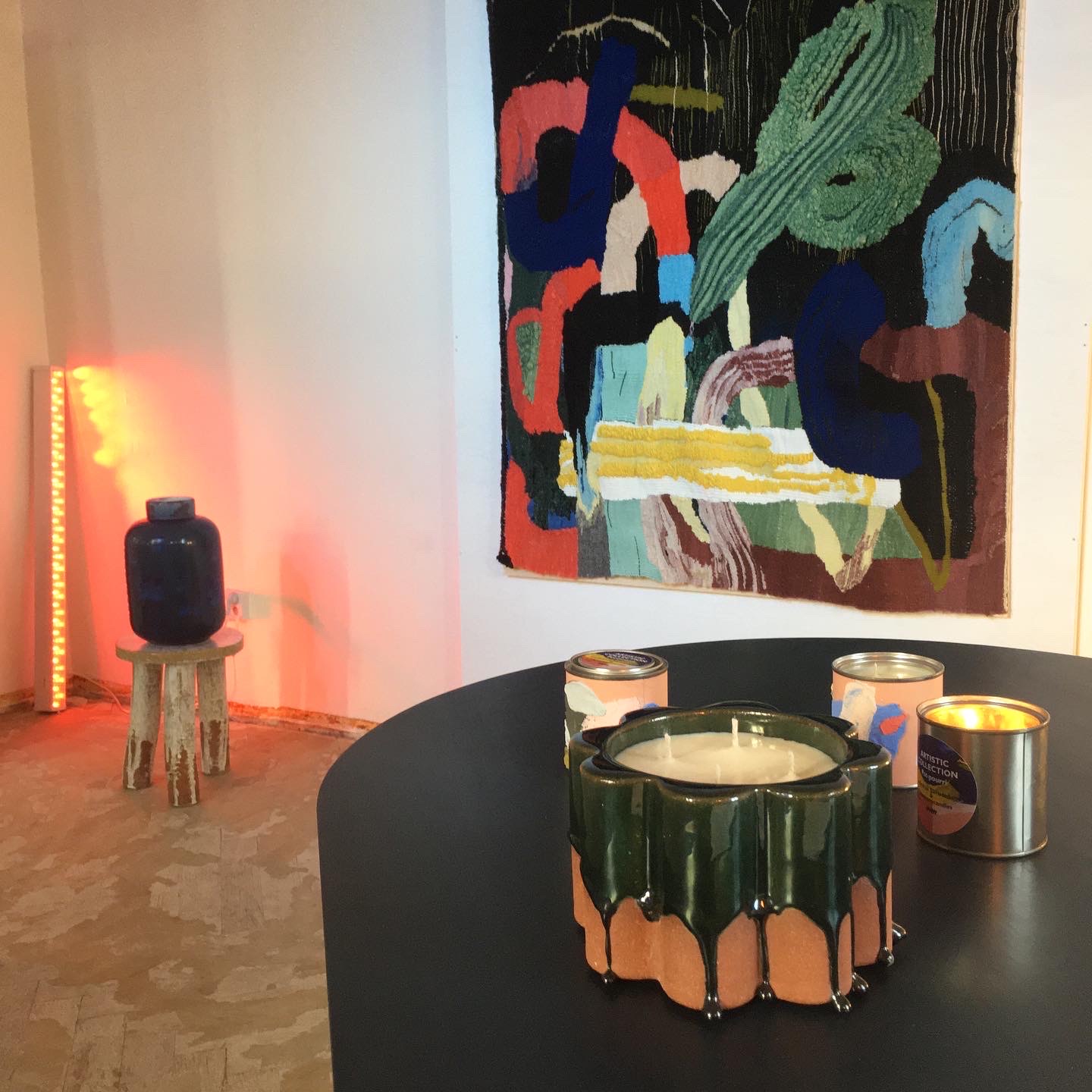 Svíčka je odlita do originální plechové nádoby ozdobené jedinečnou štukovou malbou od Malířky Lucie Jindrák Skřivánkové, která je známá svými velkoformátovými abstraktními kompozicemi plnými barev. Každý kus je neopakovatelný originál.